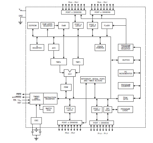 AT89S8253-24JU features: (1)64-byte User Signature Array; (2)2.7V to 5.5V Operating Range; (3)Fully Static Operation: 0 Hz to 24 MHz; (4)Three-level Program Memory Lock; (5)256 x 8-bit Internal RAM; (6)32 Programmable I/O Lines; (7)Three 16-bit Timer/Counters; (8)Nine Interrupt Sources; (9)Enhanced UART Serial Port with Framing Error Detection and Automatic Address Recognition; (10)Enhanced SPI (Double Write/Read Buffered)Serial Interface; (11)Low-power Idle and Power-down Modes; (12)Interrupt Recovery from Power-down Mode; (13)Programmable Watchdog Timer; (14)Dual Data Pointer; (15)Power-off Flag.